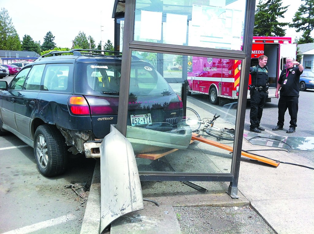 The Subaru spun around and crashed into the bus stop, while the Lumina continued on into Irondale Road.