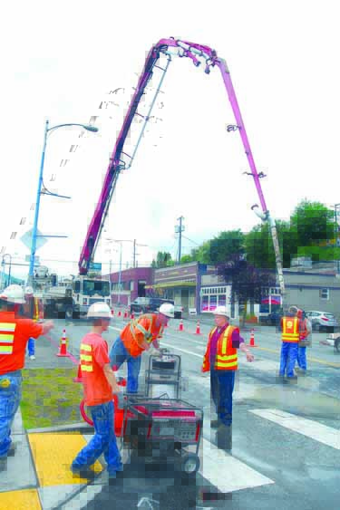 The workers finished pouring the equivalent of three dump-truck loads of controlled-density fill — an amalgam of concrete and gravel — by about 4:15 p.m. Tuesday into what Russell called the “void” under the street.