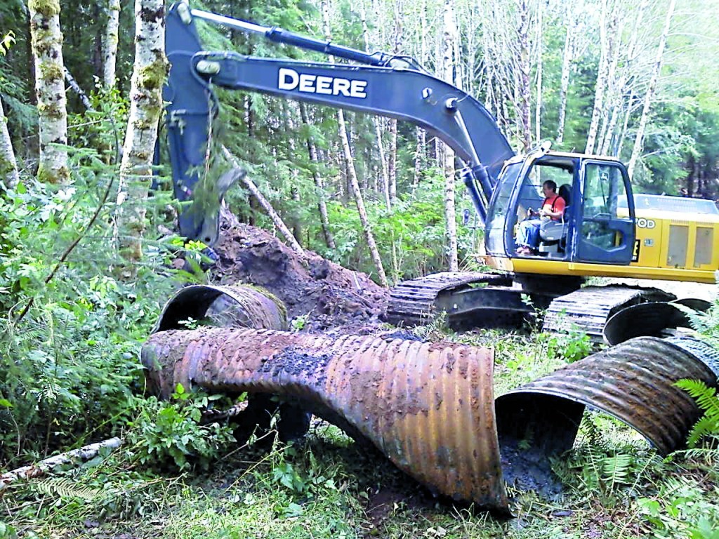 The trust contracted with J&D Enterprises, based in Beaver, to remove two large fish culverts — one concrete and one metal — that ran underneath an unused portion of U.S. Highway 101, said Mike Hagen, executive director of the Hoh River Trust.