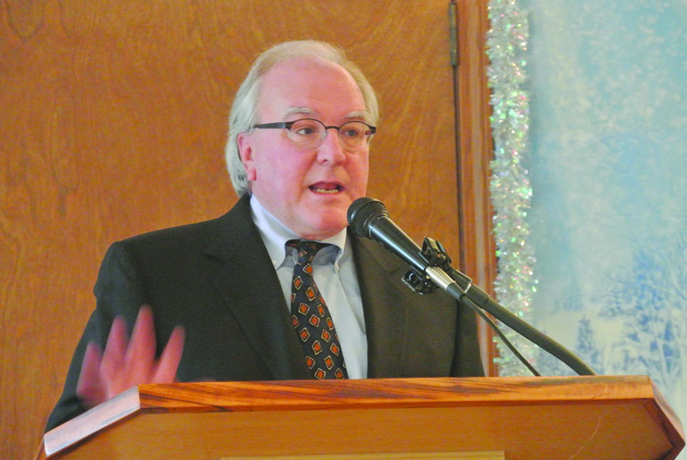 About 50 people heard the top state ferry system administrator address the meeting at the Port Townsend Elks Club.