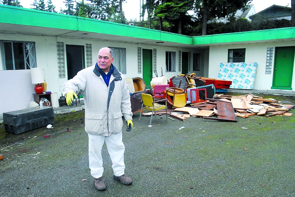 Work has begun on cleaning the caked green moss from the motel’s asphalt parking lot and clearing out all the old furniture from the dilapidated rooms, Balbir Singh said.