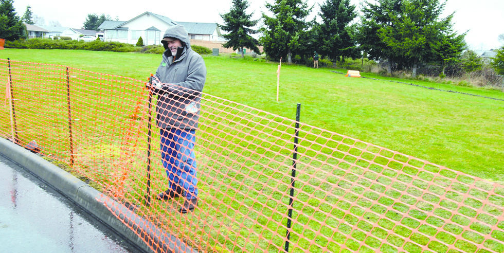 SEQUIM –– Workers from Kamin Excavation of Shelton have erected a silt fence around the northwest corner of the Water Reuse Demonstration Site north of Carrie Blake Park in preparation for starting a $273,790 project to use treated wastewater to recharge groundwater supplies.