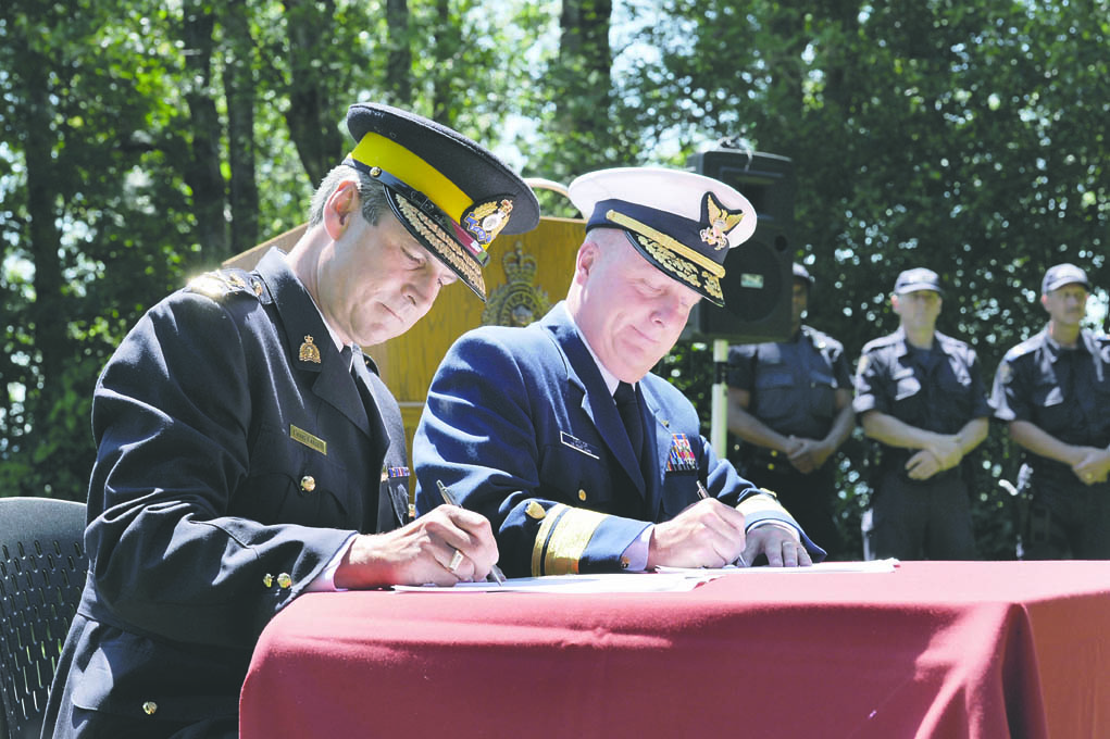 Signing the pact were Rear Adm. Keith A. Taylor, commander of the Coast Guard 13th District — which includes the North Olympic Peninsula — and Deputy Commissioner Craig Callens, commander of the Royal Canadian Mounted Police “E” Division.