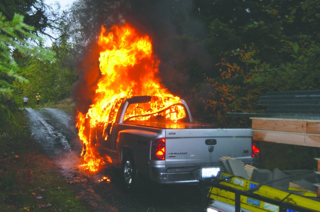 Fire destroys pickup truck on remote road southeast of Port Angeles