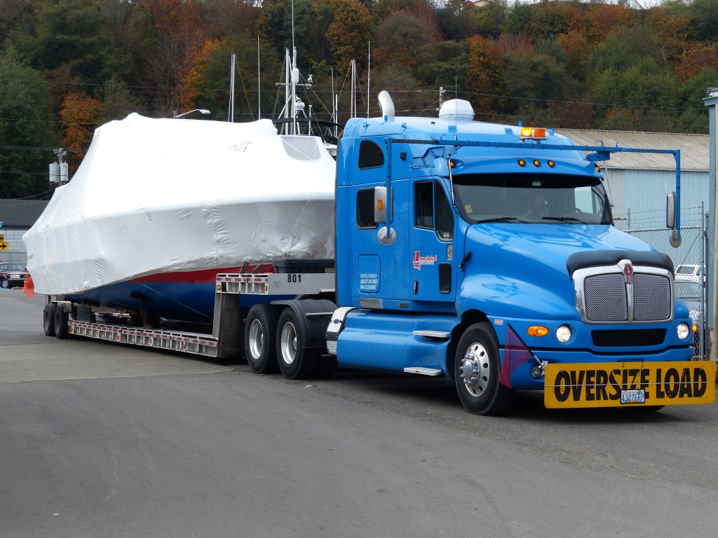 Joe said they resolved the dilemma by having the truck driver take the shrink-wrapped boat to the Port Angeles Boatyard.