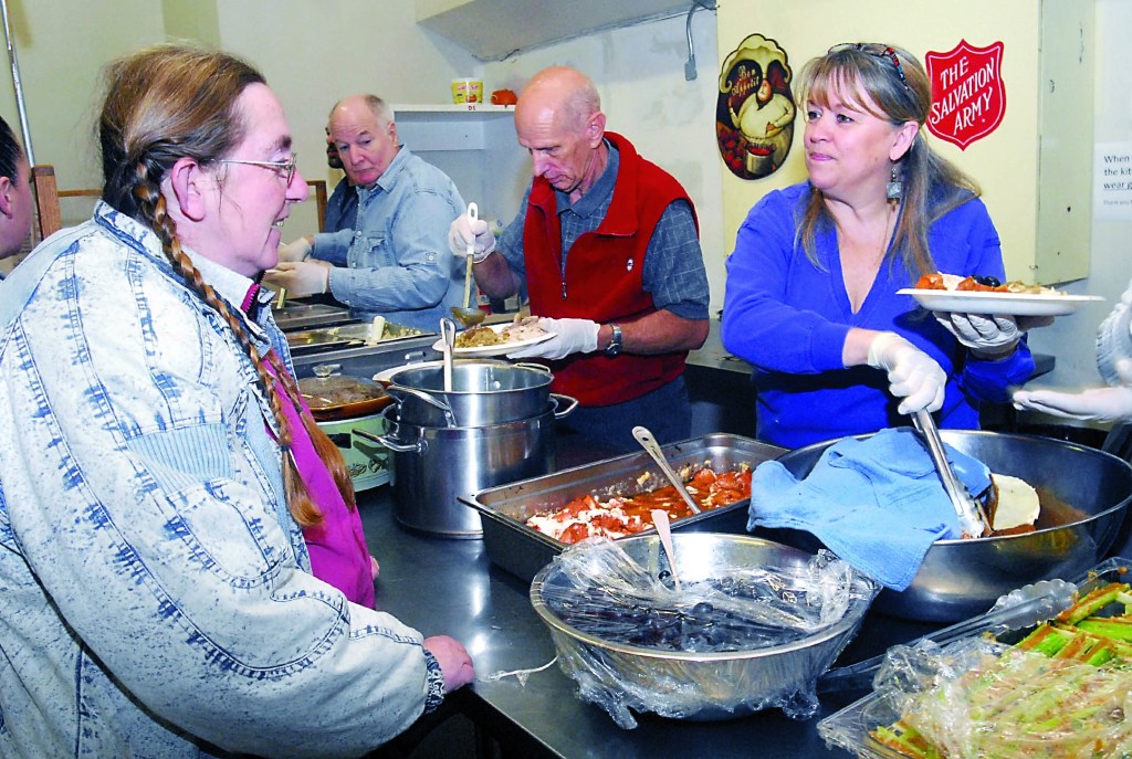The Salvation Army serves free meals Mondays through Fridays: breakfast from 8:45 a.m. to 9:15 a.m. and lunch from noon to 1 p.m.