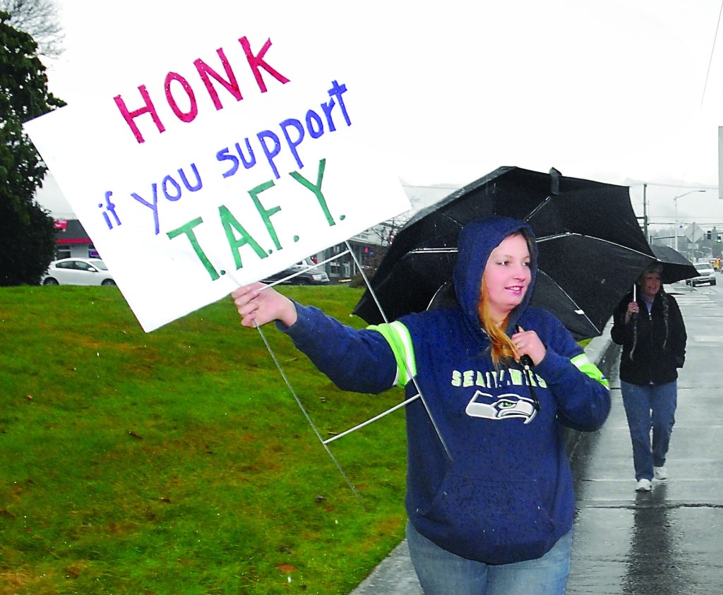 TAFY supporters protest Tuesday at Clallam County Courthouse over funding cut