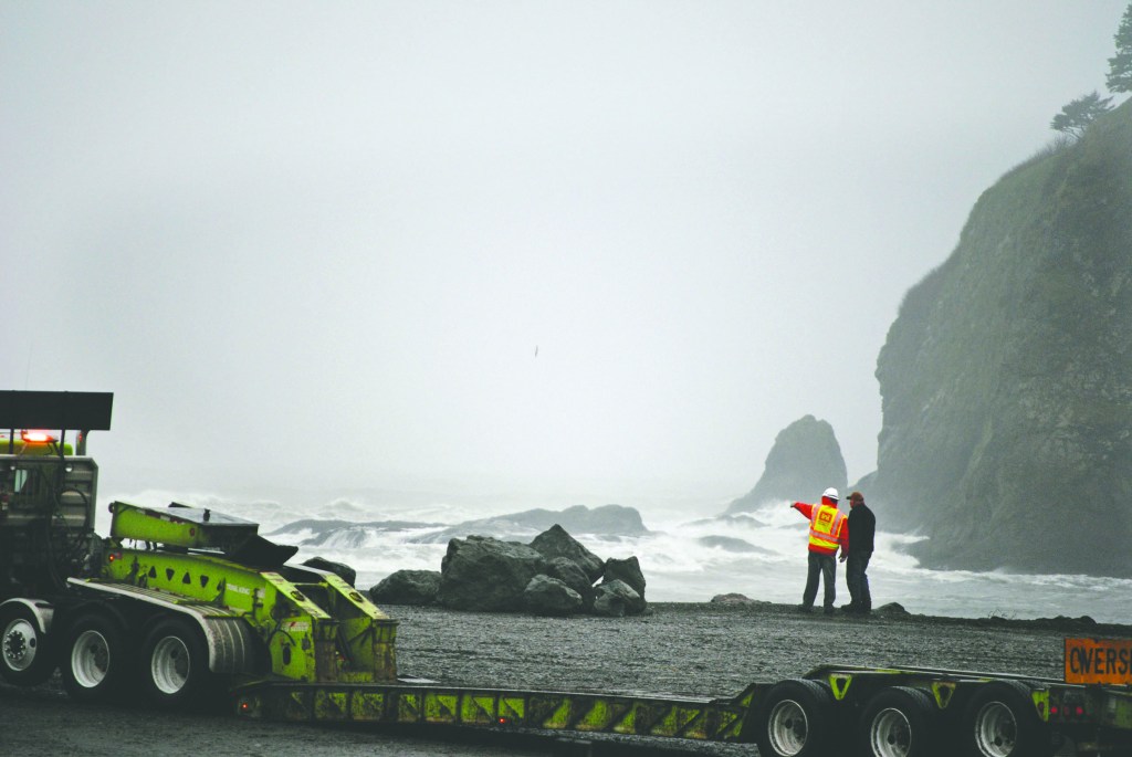 LAPUSH — Crews contracted by the U.S. Army Corps of Engineers are placing almost 500 tons of large boulders, known as rip rap, along a jetty protecting LaPush from flooding in preparation for 29-foot waves and 65 mph winds predicted starting Saturday.