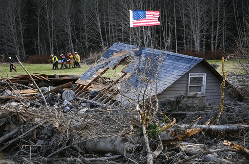 The debris field is a huge, dangerous mess – 15 feet thick in some places. “It’s muddy, in areas it’s like quicksand,” said Snohomish County Fire District 21 Chief Travis Hots. “One of the folks out there told me, ‘Chief, sometimes it takes five minutes to walk 40 or 50 feet.'” Searchers are also running into gasoline and septic discharge and dealing with ground that geologists warn remains unstable.