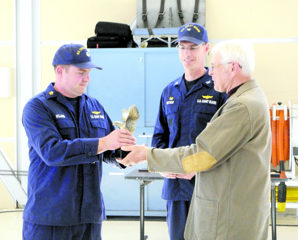 At the ceremony, Navy League member Ken Sweeney presented Williams with a soaring-eagle statuette engraved with his name following an introduction by the station’s commanding officer, Capt. Keith McTigue, and command master chief, Lawrence “LP” Moroles.