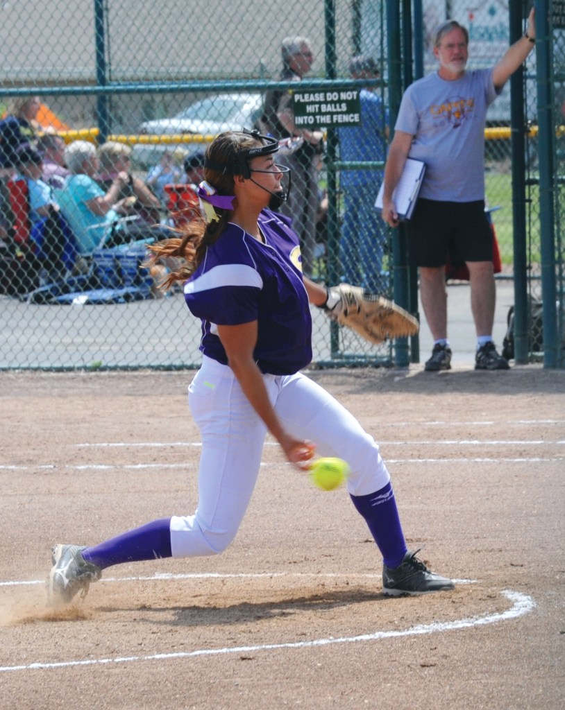 Makayla Bentz pitches for Sequim against Capital at the Class 2A state tournament last week. Bentz was voted the Olympic League MVP. Lonnie Archibald/for Peninsula Daily News