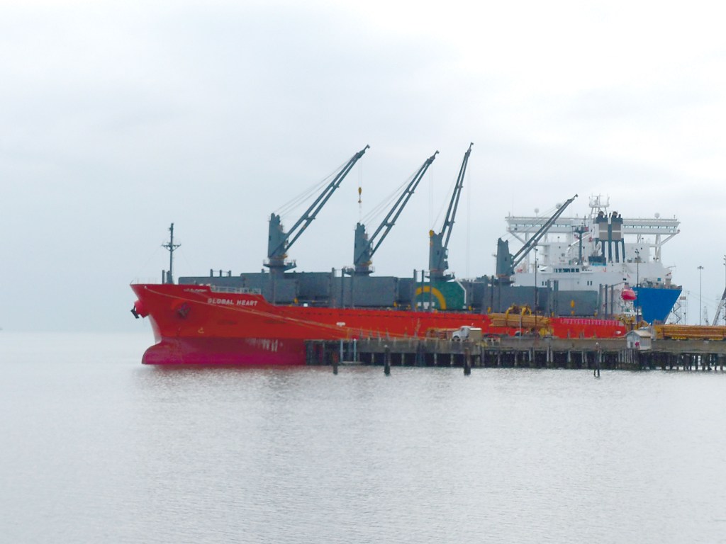 Global Heart, a 584-foot Panamanian-flagged cargo ship, moored to the Port of Port Angeles’ Terminal 3 at suppertime last Sunday, concluding a 4,918-nautical-mile voyage since her departure from Shanghai, China, on