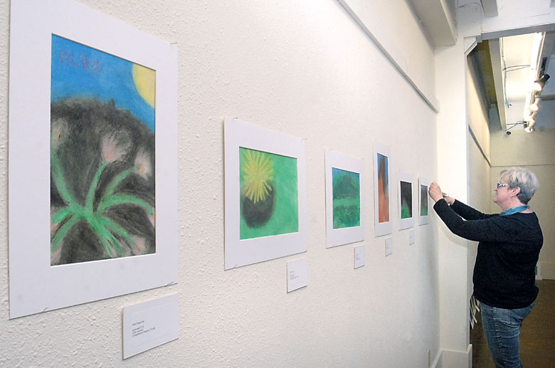 Artwork submitted for the Community Paint Out competition was hung at The Landing mall, 115 E. Railroad Ave., on Friday and will be displayed through Sept. 14.