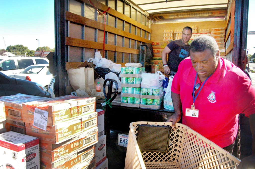 Most spent their own money to replenish the organization’s dwindling food-bank pantry, bringing more than 2,500 pounds of staples including peanut butter, pasta, canned fruit and vegetables and other non-perishables in just seven hours between 8 a.m. and 3 p.m. Saturday to the organization’s truck in the Safeway parking lot on Third Street.