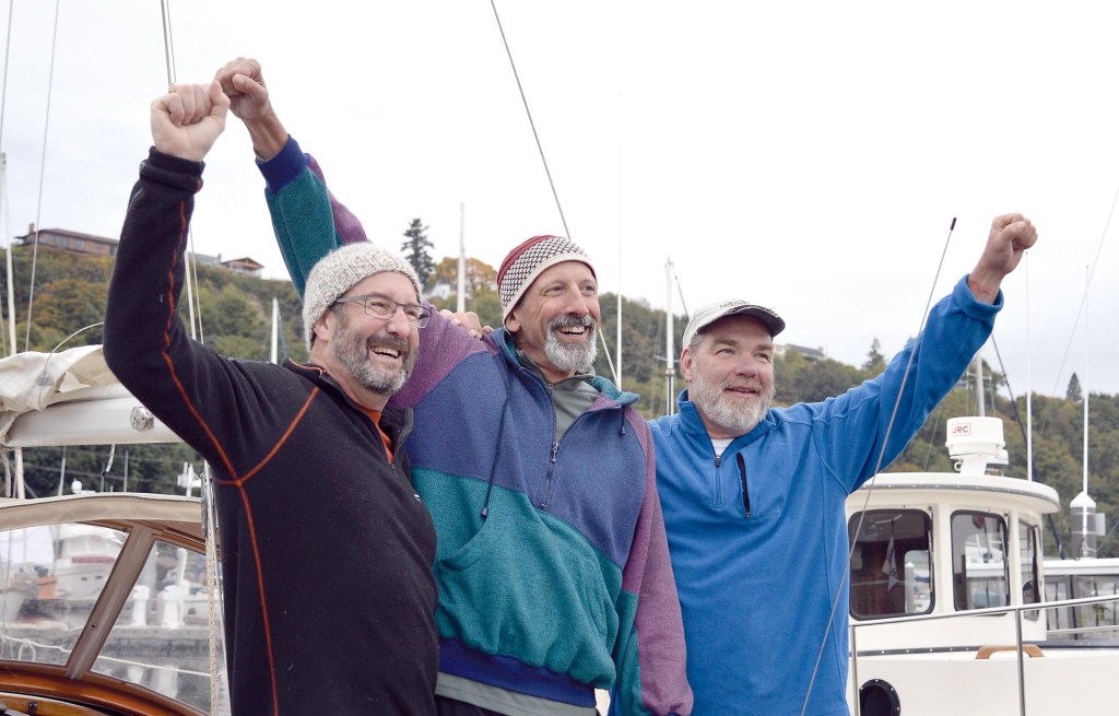 They returned to Port Angeles on support boats; posed for photos on the deck of the Isle of Shoals, owned by Kristin Capaccioli and George Fleischfresser of Port Angeles; and cracked geezer jokes.