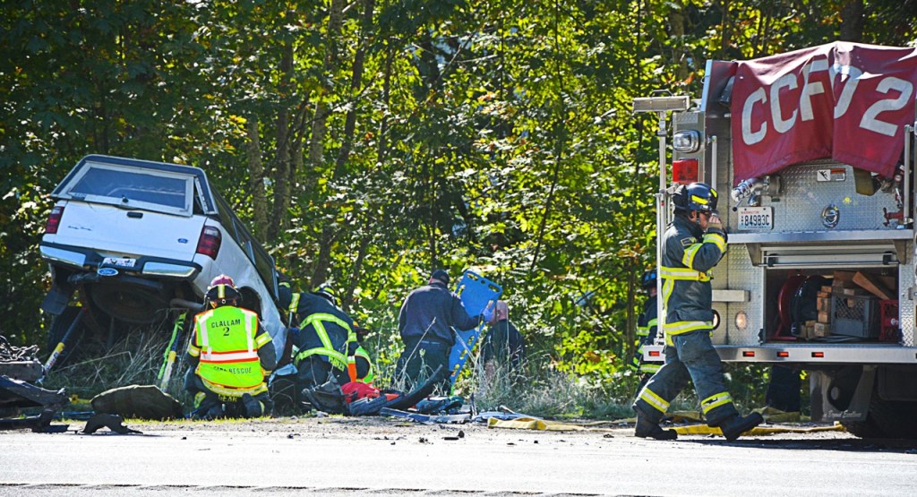 The pickup truck collided in the eastbound lane with a 2008 Chevrolet Malibu heading east on Highway 101 at Thompson Point Road and being driven by Port Angeles resident Scott Lee Penson, 55.