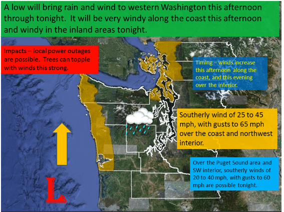 STORM WHAT’S NEXT? — UPDATE (new map) — Third and potentially strongest of our 3 wet and windy storms expected LATE TODAY ( * And why it’s been so . . . warm . . . lately * )