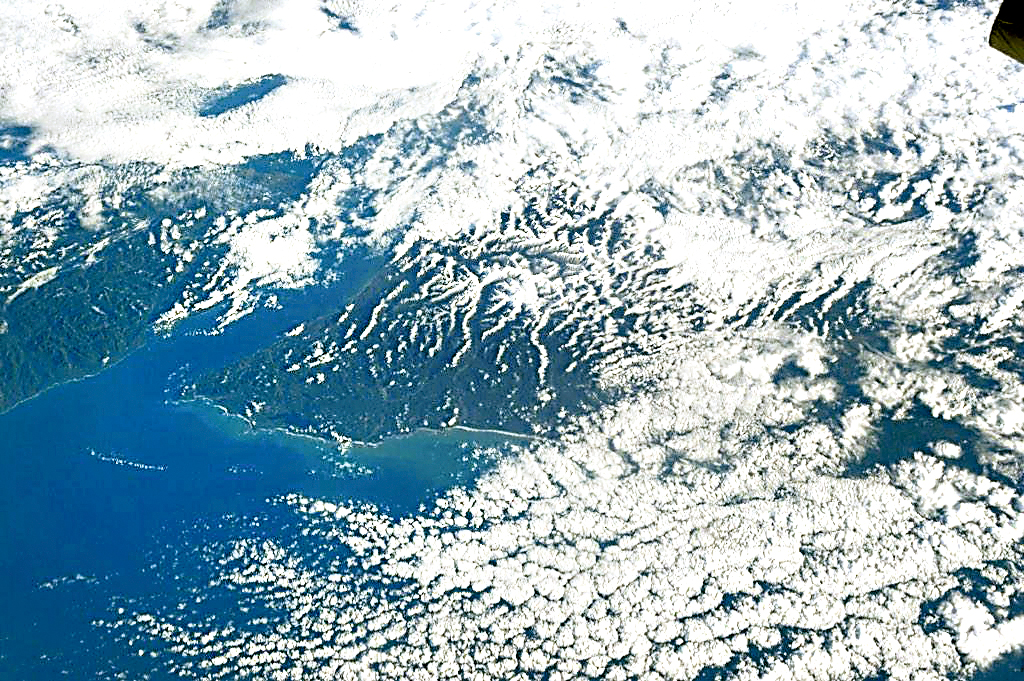 NASA astronaut Terry Virts, flying in the International Space Station about 240 miles above Earth, took this photo of Cape Flattery and the entrance to the Strait of Juan de Fuca during a break in the winter clouds Jan. 5.