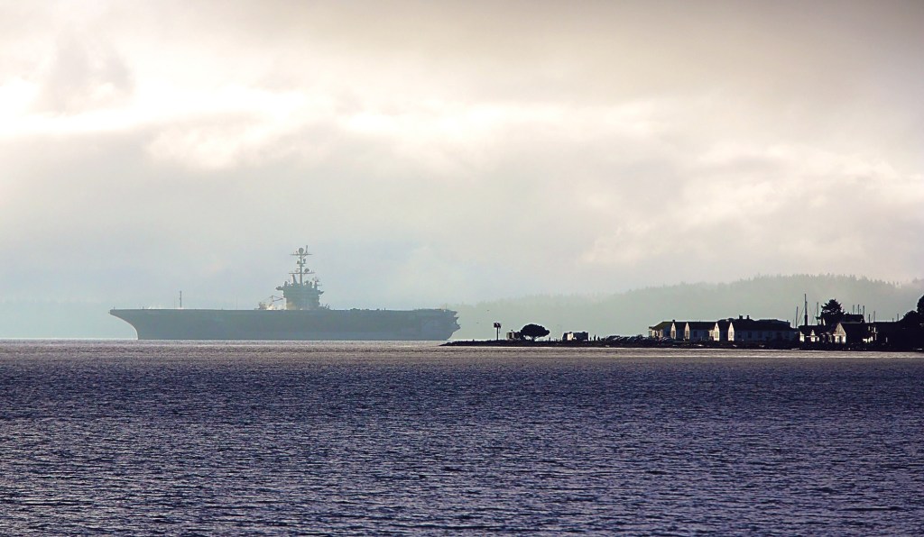 The Stennis, which is based in Bremerton, docked at Naval Magazine Indian Island on Monday afternoon and loaded about 6 million pounds of ammunition before leaving for San Diego on Friday morning.