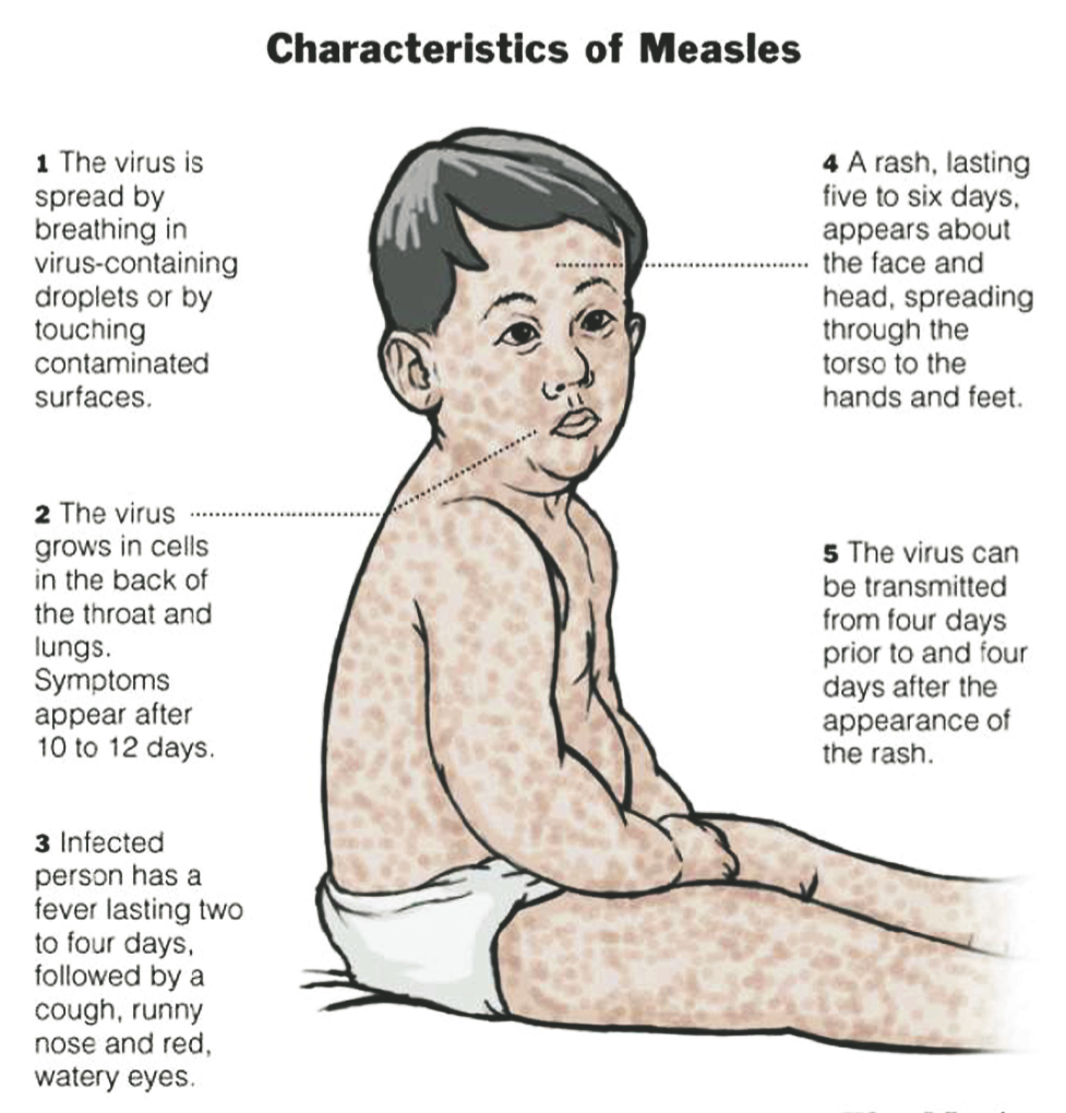 People with measles can spread the disease to others from four days before the infected people develop the ailment’s telltale rash. They remain contagious for four days after the rash appears.