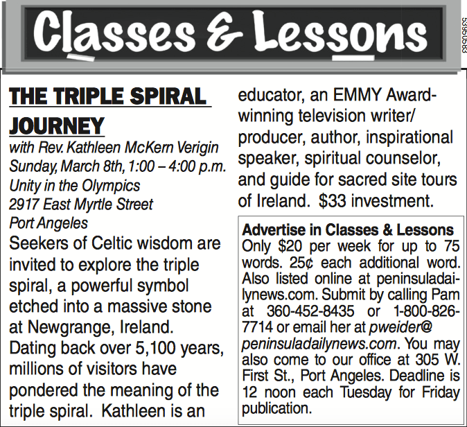 CLASSES AND LESSONS — Learn about ‘The Triple Spiral’ on Sunday in Port Angeles
