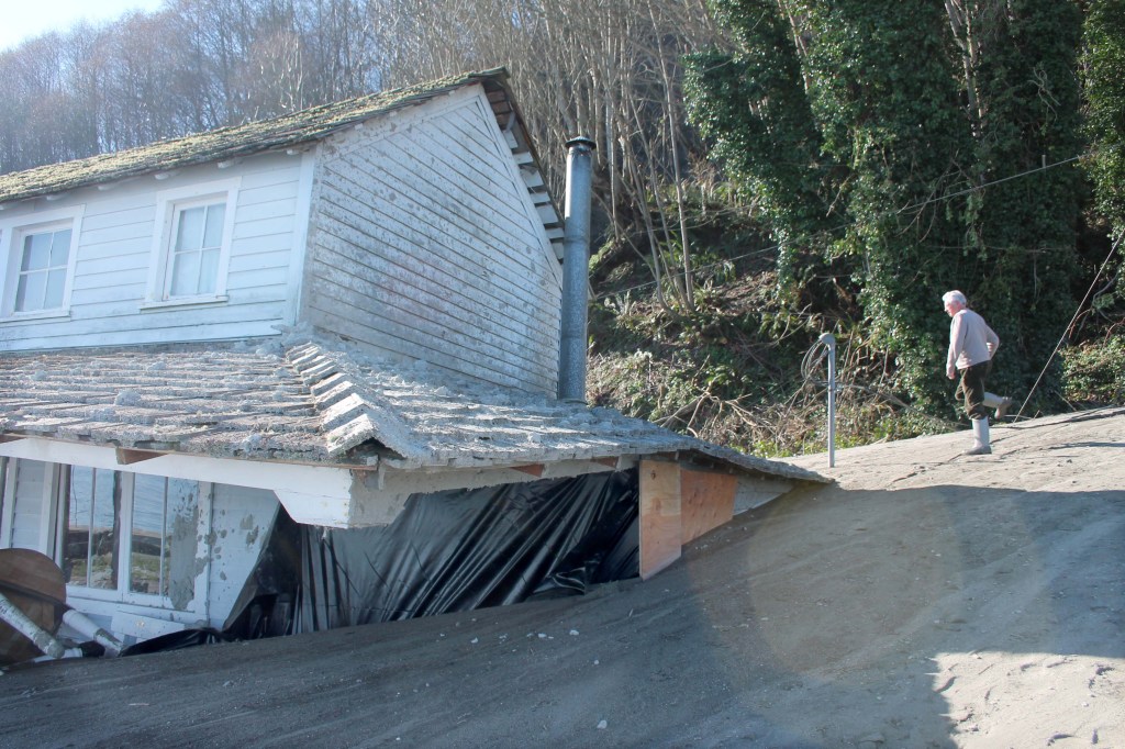 In late February, a rush of mud, clay, water, trees and brush slid from the 200-foot high bluff and down toward Puget Sound, wrecking one Campers Row structure and filling another with sediment, the Record said.