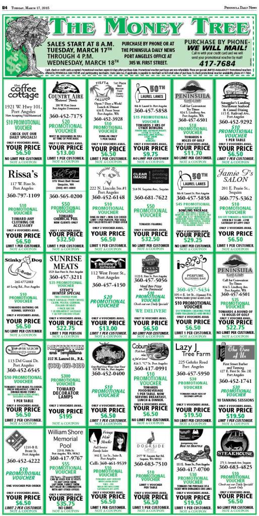 PLUCK A BARGAIN from THE MONEY TREE . . . in today’s print (and eEdition) Peninsula Daily News!