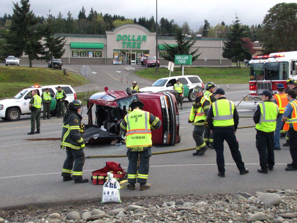Clallam County Sheriff’s Deputy Paul Federline was first on the scene and found the Blazer on its side, engine still running and gasoline pouring from the fuel tank and running down the road, said Chief Sam Phillips of Clallam County Fire District No. 2.
