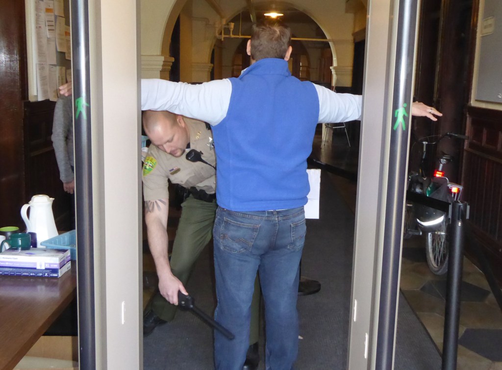 The Sheriff’s Office assigned four deputies to the checkpoint, adding to the two who usually work courthouse security.