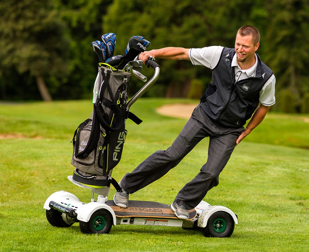 The beauty and fun of using a GolfBoard derives, Shea said, from not carrying your bag and turning the board based on your body’s movement.