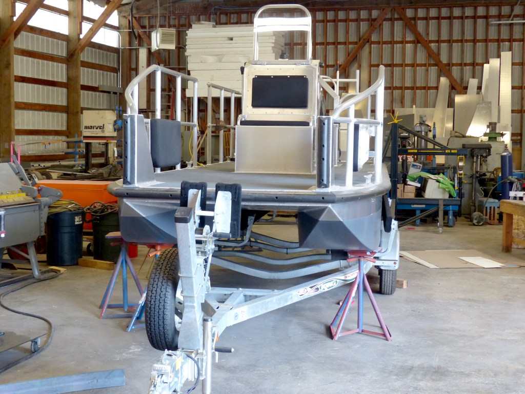 It’s a 21-foot, flat-bottom catamaran that is powered by a 115-horsepower Yamaha outboard motor that is outfitted with a jet pump.