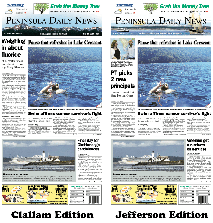 There are two editions — one tailored to Port Townsend/Jefferson County readers, the other for Clallam County readers.