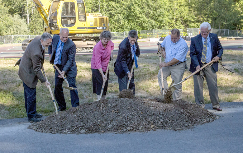 Board members and faculty from the nursing, medical assisting and early childhood development programs joined Peninsula College President Luke Robins on Tuesday to turn dirt in front of the construction site near the tennis courts southeast of Keegan Hall at the campus at 1502 E. Lauridsen Blvd.