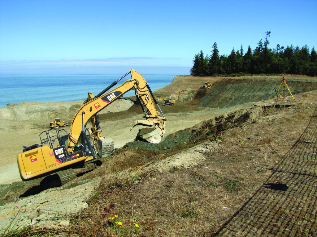 PORT ANGELES — A city project in which 400,000 cubic yards of closed city landfill trash has been moved away from an eroding Strait of Juan de Fuca bluff, where it was in danger of falling more than 100 feet to the beach below, is nearly completed.
