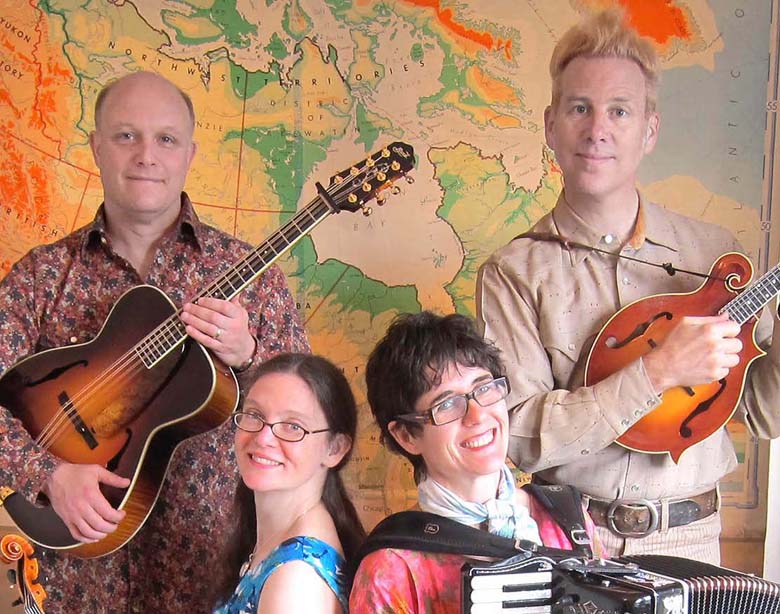 Mighty Squirrel consists of familiar players on the folk and bluegrass scene: singer-fiddler Caridwen Irvine Spatz, fiddler-octave mandolinist Greg Spatz, accordion player Nova Karina Devonie and David Miles Keenan, who plays the banjo and National guitar.
