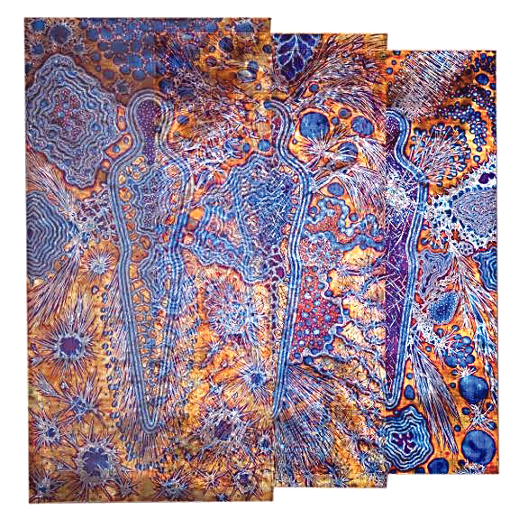 Bergner, who works with what he calls “flame-painted” stainless steel, references primordial life, plant biology and geology in his art, while Reid depicts native Northwest species alongside the human activity that challenges their survival; then there’s Deisher’s mixed media fiber and drawing works, art full of visible and hidden meanings.