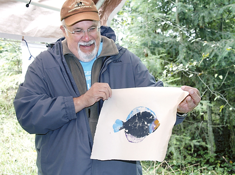 Fish printing — a process in which a mirror image of a fish is transcribed via ink onto parchment or cloth — also will be offered on paper, white T-shirts or pillow cases provided by attendees.