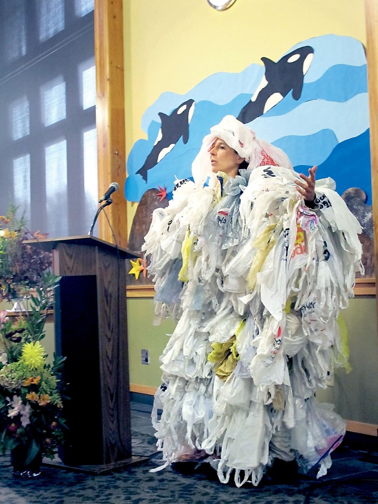 Rubin appeared before the Port Townsend City Council several times as the Bag Monster, wearing a suit made of 500 plastic bags that represented what each Port Townsend resident then used in a year.