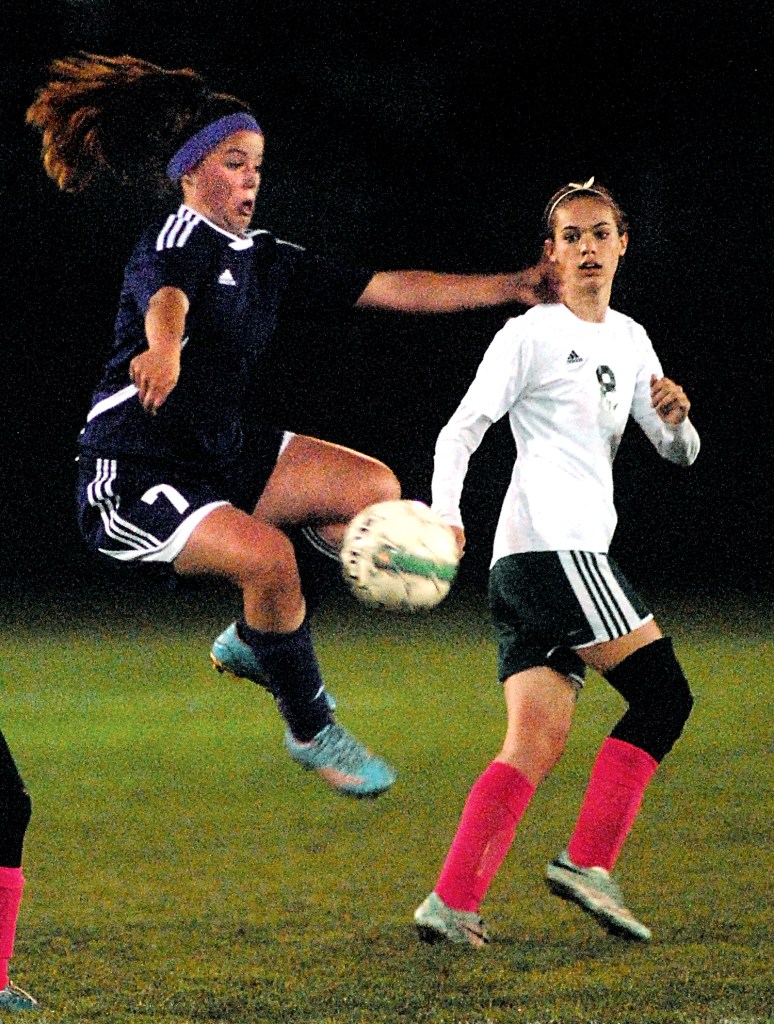 Sequim’s Nathalie Torres sent a long, soaring ball into the Port Angeles goal box that bounced low and out of the arms of Wenzel, who had attempted to smother the shot.