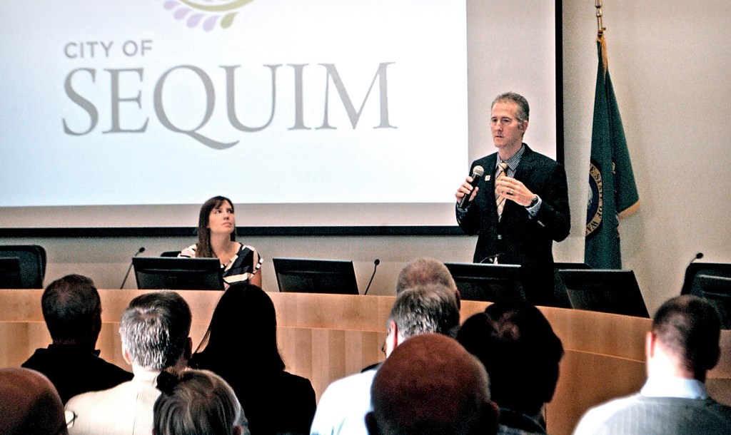 About 100 people attended the meeting. Among them were four Sequim City Council members, SARC board members, Sequim Schools Superintendent Gary Neal and Eric Lewis, Olympic Medical Center CEO.