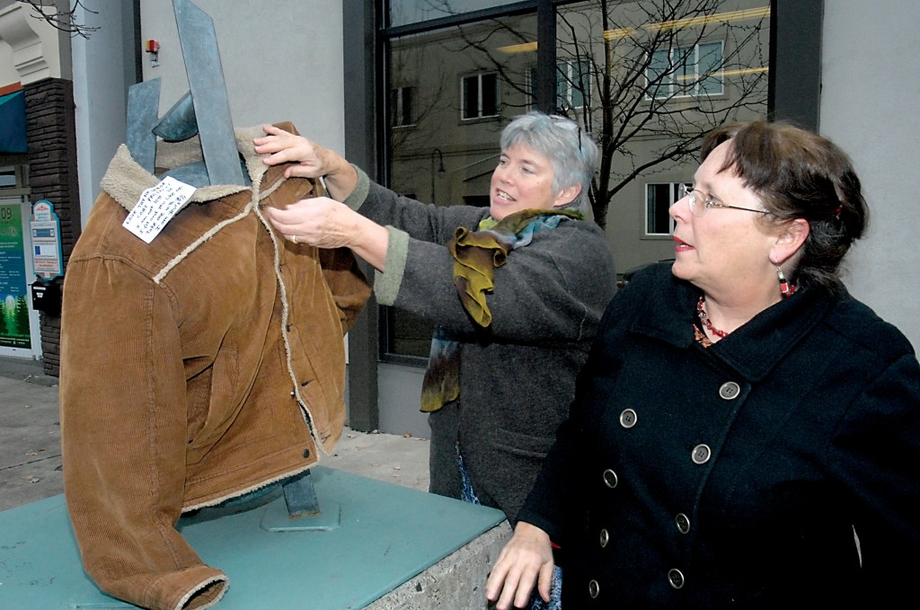 Neither saw a reason as to why it could not be done in Port Angeles, especially with the human-shaped sculptures that dot the downtown landscape that would make natural stands for the coats.