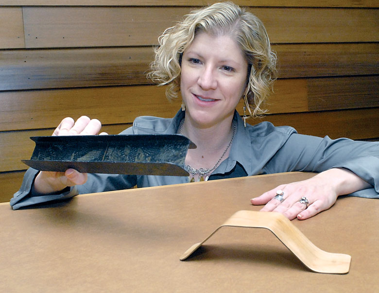 As he showed commissioners a sample ribbon-like strip of maple/carbon-fiber laminate, Larsen asked, “Can you imagine a whole line of furniture that combines the wood that we’re so famous for with carbon fiber?”