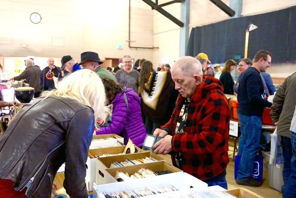 Richard Williams of Port Angeles, right, was one of more than 250 people looking for vinyl bargains at the inaugural Port Townsend Record Show on Saturday at the American Legion Hall in Port Townsend.