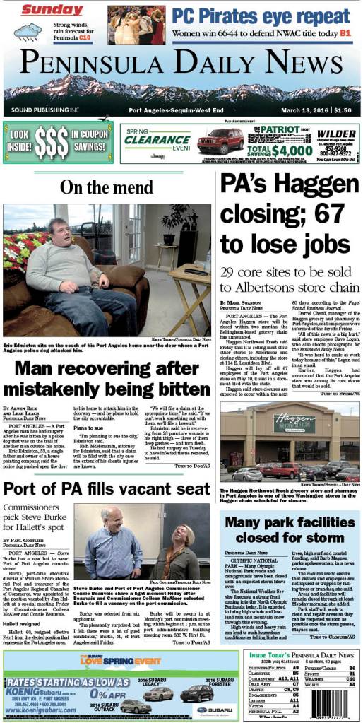 Today's front page tailored for the PDN's readers in Clallam County. There's more inside that isn't online! ()