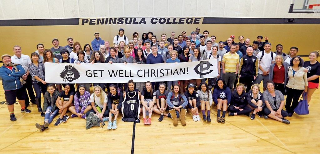 On Thursday afternoon, “we gathered all of our athletic teams and all the people from the campus who came on short notice, and we took a picture in the gym and held up a sign that said ‘Get well, Christian,’ ” Ross said.