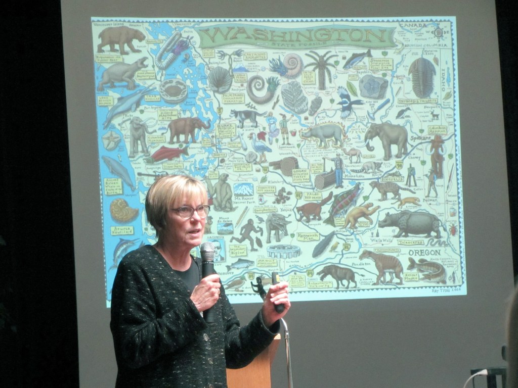 The process to dry and stabilize the fossil could take nearly two years, Julie Stein, Burke Museum executive director, told some 30 to 40 people attending the Sequim-Dungeness Valley Chamber of Commerce luncheon Tuesday.
