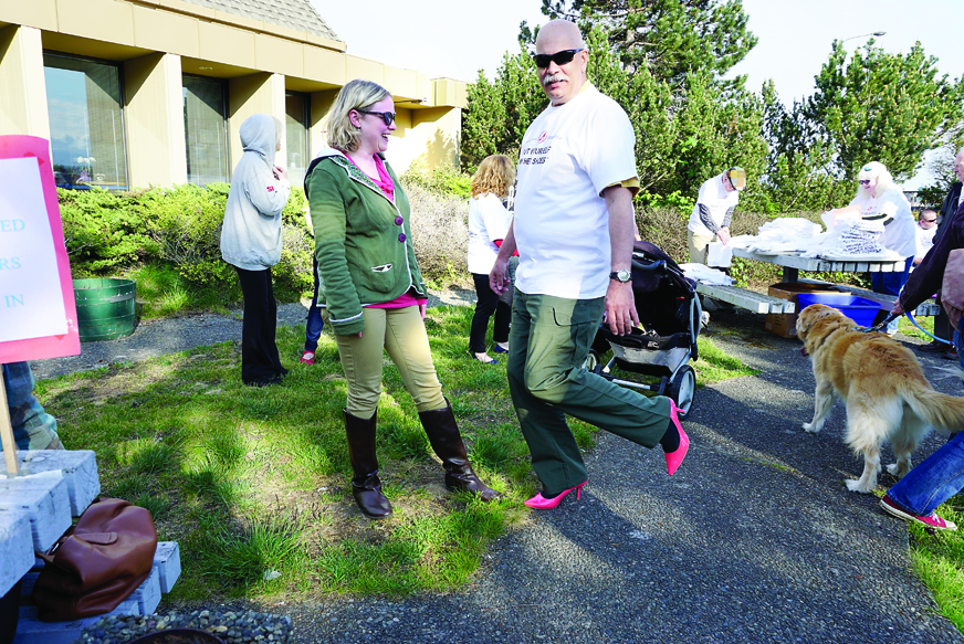 PORT TOWNSEND — About 55 people, many in high heels, participated in Wednesday’s seventh annual Walk a Mile in Her Shoes event.