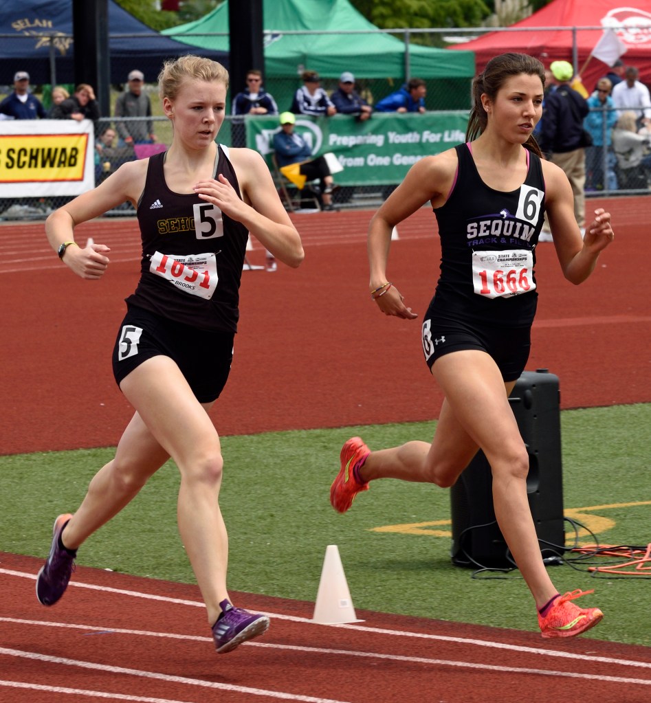 800—1, Waverly Shreffler (Seq) 2:19.11; 9, Audrey Shingleton (Seq) 2:22.88. 1,600—6, Gracie Long (PA) 5:14.47. 3,200—9, Long (PA) 11:32.68. 4×200—11, Sequim (Gretchen Happe, Mercedes Woods, Kiara Pierson, Shreffler, Emma Beeson, Telicia Busby) 1:48.86. 4×400—5, Sequim (Shreffler, Woods, Happe, Pierson, Shingleton, Emma Beeson) 4:06.89. High Jump—8, Long (PA) 4-10. Pole Vault—Elizabeth Sweet (Seq) 10-0.