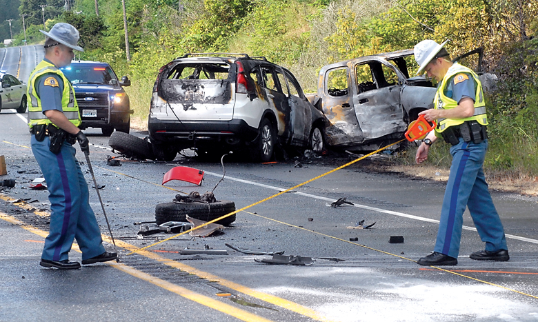 A California man was injured in the collisions. Andrew H. Stockton, 61, of Daly City, Calif., was taken to Olympic Medical Center, troopers said. His condition was not available late Friday night.