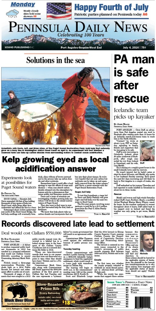 GOOD MONDAY MORNING! What’s happening on the North Olympic Peninsula? See today’s PDN front page